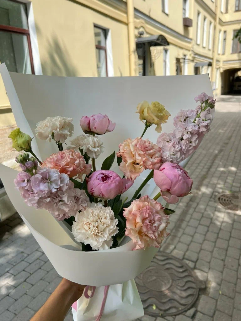 Очень довольна заказом! Букет из нежных пионов — просто загляденье! Привезли в красивой упаковке, с открыткой, как просила. Курьер заранее позвонил. Пунктуально, вежливо, профессионально. Спасибо за отличную работу!
